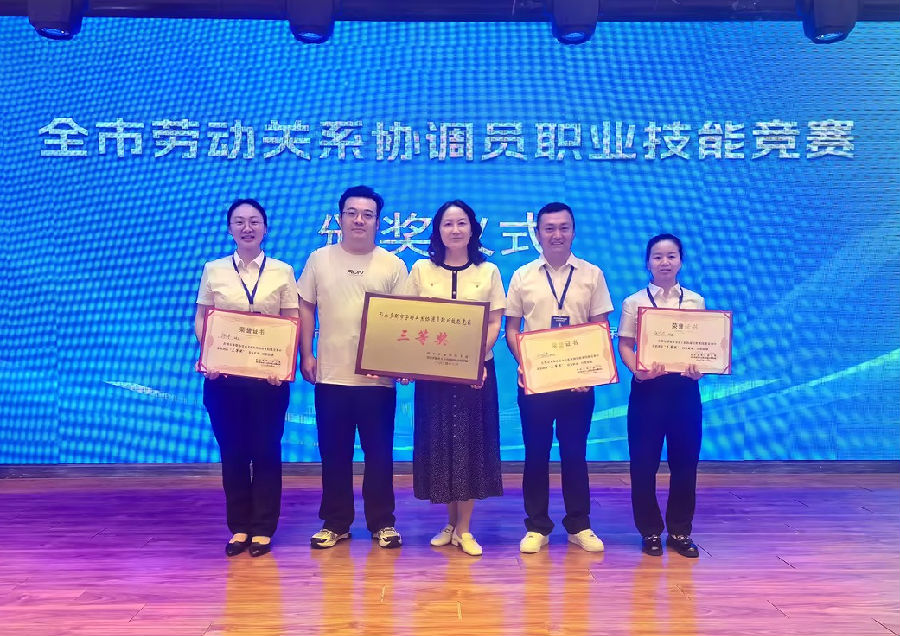 本次竞赛总工会主办、市人社部协办,吸引了来自全市各行业的众企业代表队参加。竞赛涵盖了劳动关系法律法规、劳动争议处理、员工权益保障、集体协商模拟等内容,对参赛队伍的专业素养和综合能力提出了极高要求。期间,公司代表队凭借扎实的专业知识、出色的团队协作和优秀的应变能力,经过笔试、答辩及实操演练三轮比拼,在众多参赛队伍中脱颖而出,最终获得团体三等奖。